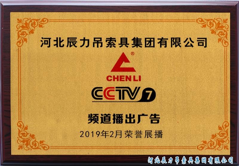 專注品質(zhì),誠信為本,辰力吊索具。 辰力牌吊索具系列于2019年2月在***電視臺(tái)第七套欄目播出,有效期2021年2月。